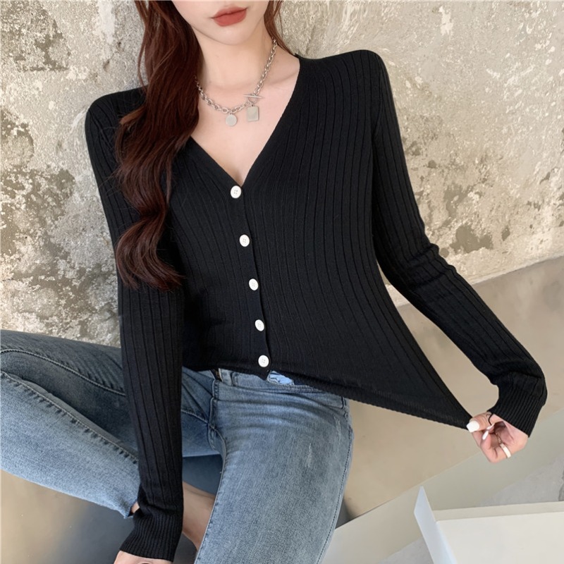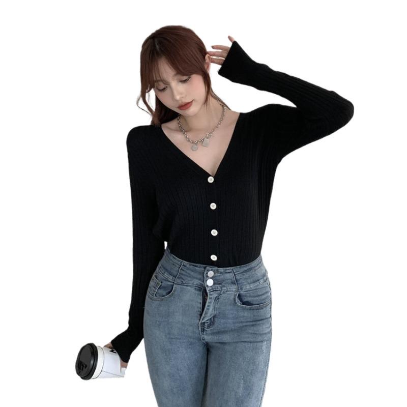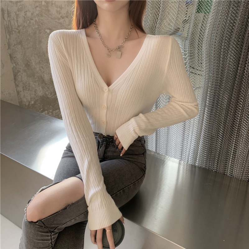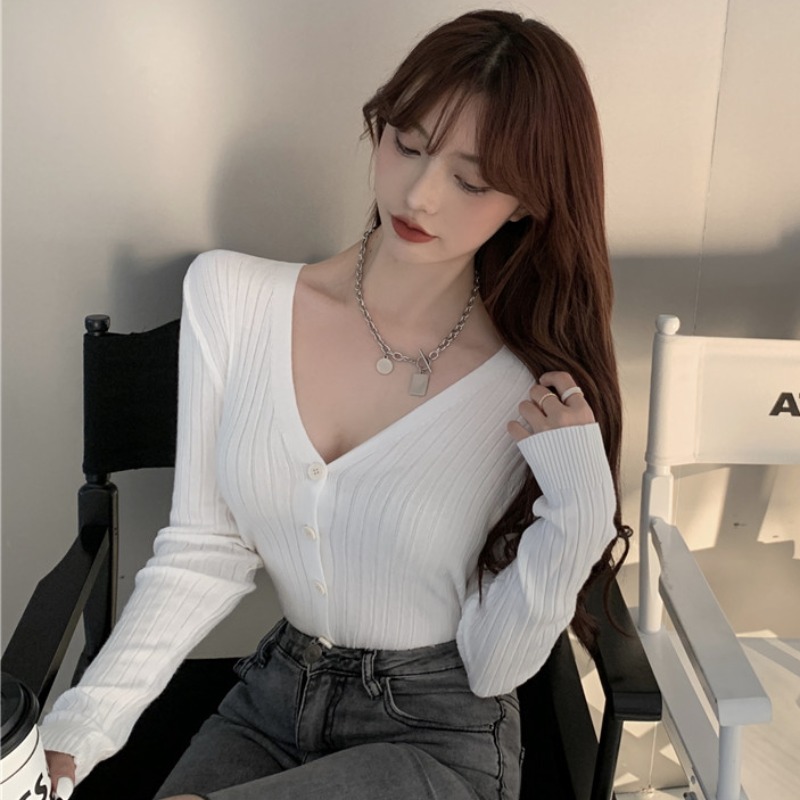Sanskrit V collar bottom-shirt female spring sexy inner lap long sleeve cardiovert sweaters 100 hitch knitted blouse