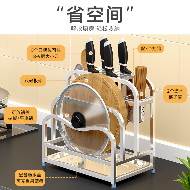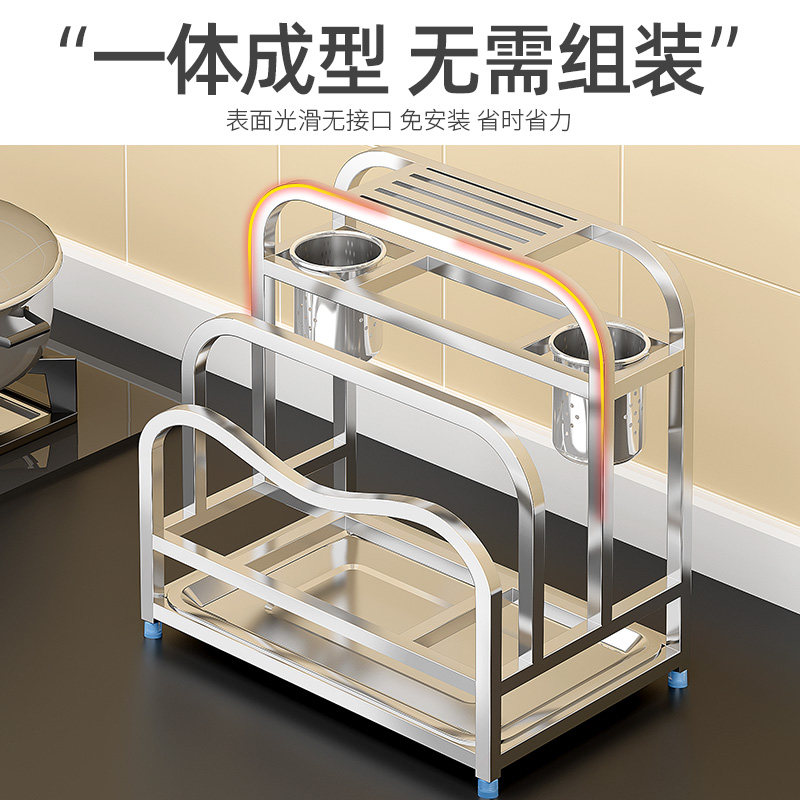 Stainless Steel Tool Holder Kitchenette Chopstick Cage Integrated Household Cutting Board Chopping Board Chopping Knife Holder Supplies Cutter Containing shelf