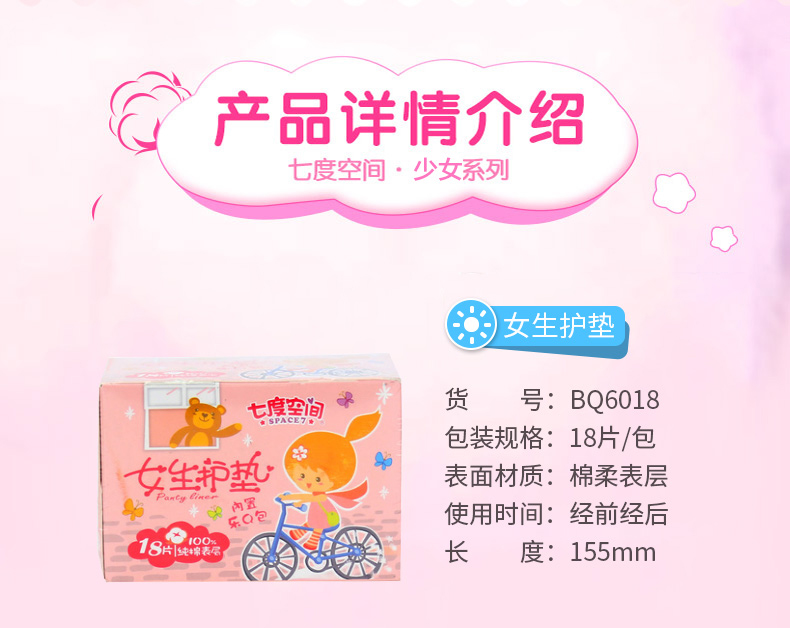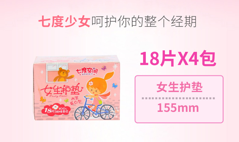 Seven Degrees Space Girls Sanitary Pads Pure Cotton Ultra Slim Breathable Adolescent Sanitary Cotton 4 Package Composition