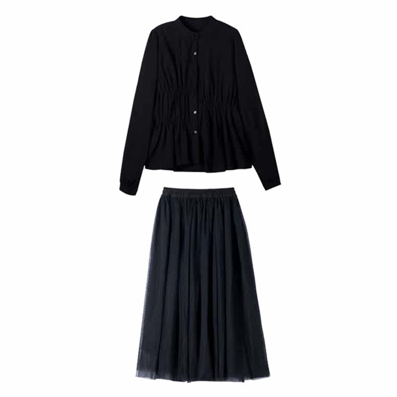 Large size women's clothing 2021 early spring fat mm slightly fat girl wear shirt mesh skirt slimming two-piece suit