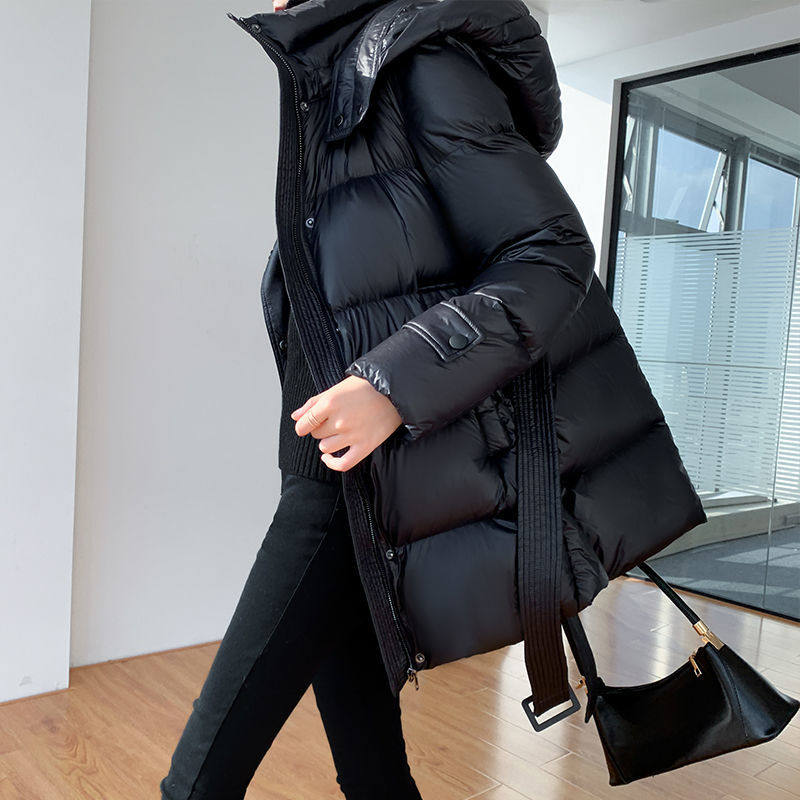 Large size women's 2020 winter wear mid-length version of the waist and thin cotton-padded jacket small hooded down padded jacket women