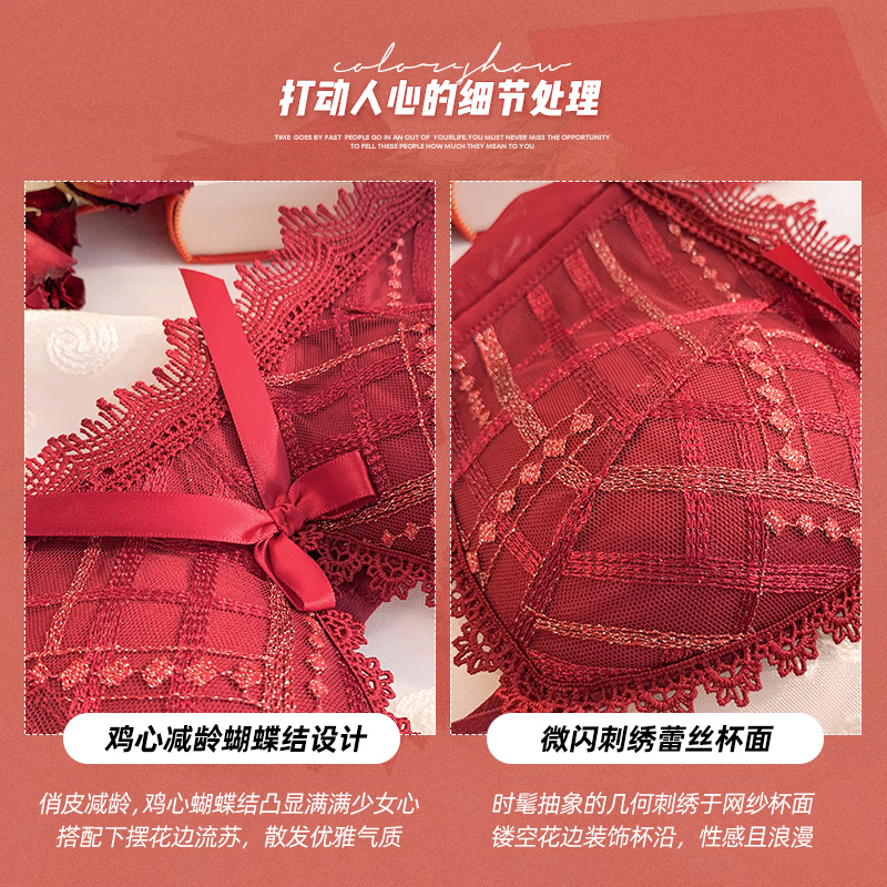 Red underwear set This year gathered to collect the milk on the top of the non-steel lace temptation girl bra cover