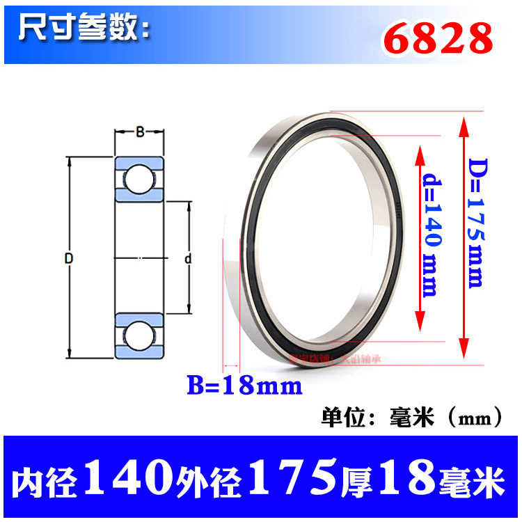 Deep groove ball mechanical bearing 6828RS 2RS 61828 inner diameter 140mm outer diameter 175mm thickness 18mm