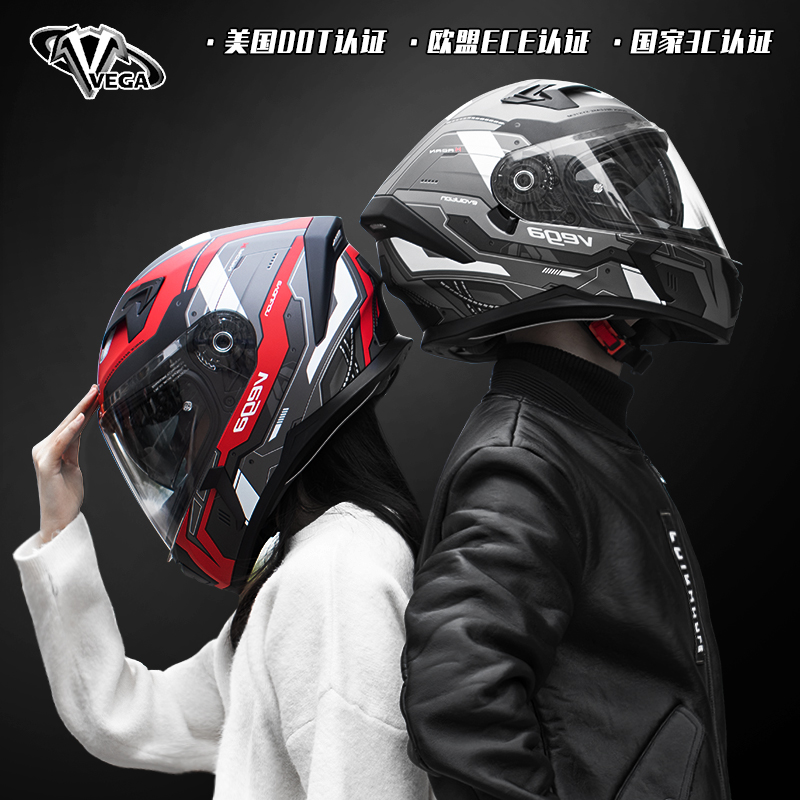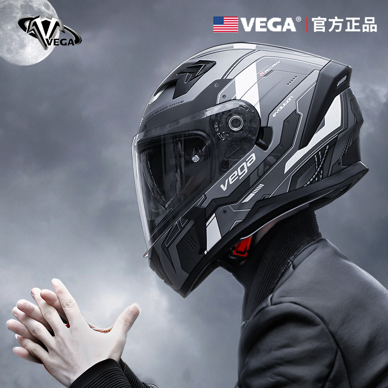 American VEGA Motorcycle Helmet Men and Women Four Seasons General Bluetooth Locomotive Full Helmet Anti-Fog Winter Racing Personality Cool