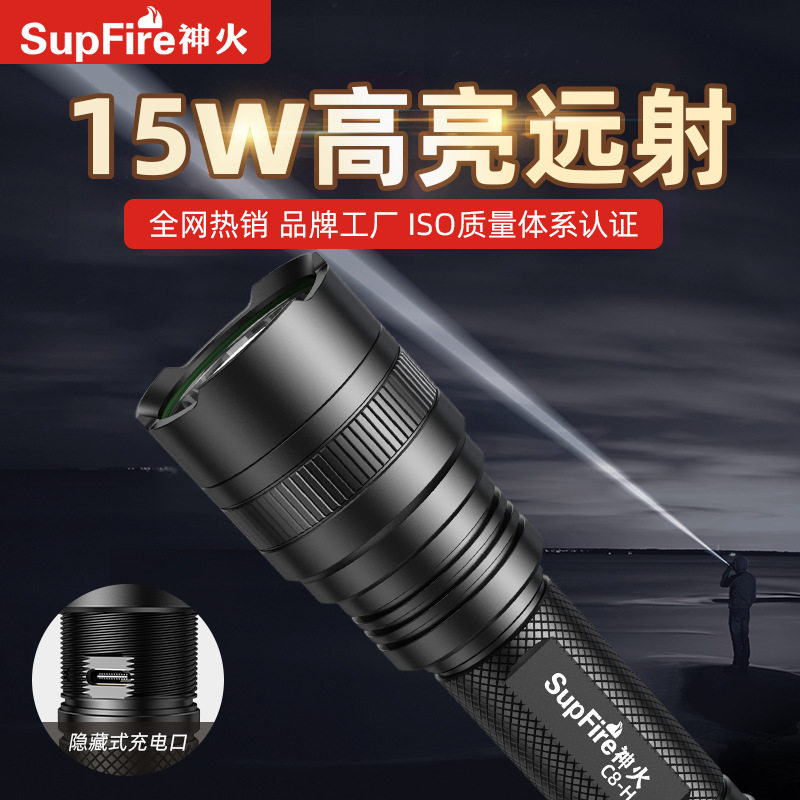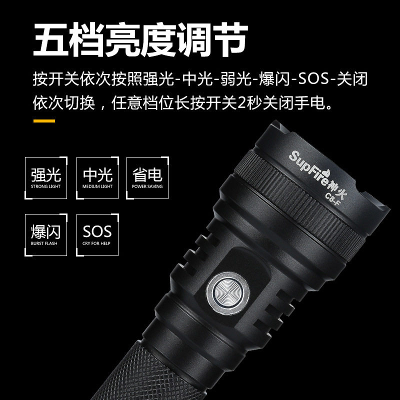 supfire classic 5WC8 strong light 7W flashlight T6 emergency lighting flood prevention waterproof riding charging LED