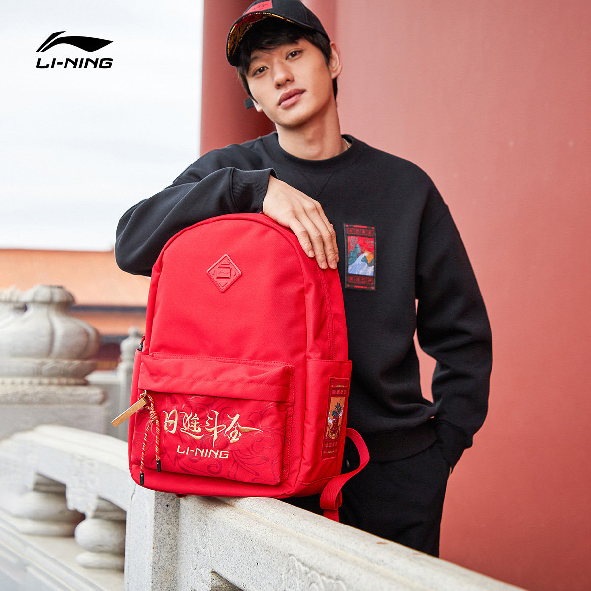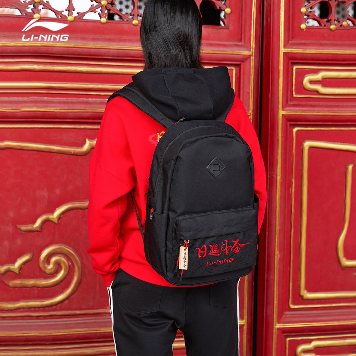 Li Ning backpack flagship spring new year limited day into the bucket gold red backpack computer bag male and female student school bags