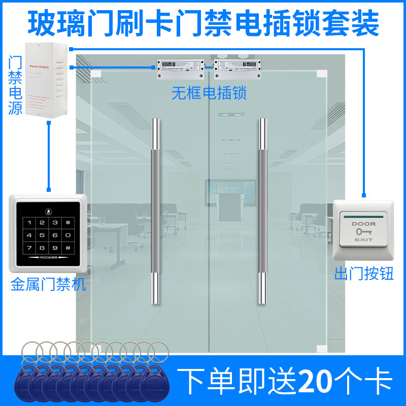 ACCESS CONTROL KIT WITH FRAME GLASS DOOR PASSWORD ACCESS LOCK METAL ACCESS BRUSH CARD MACHINE MAGNETIC LOCK SUIT DOOR CONTROL INSTALLATION-TAOBAO