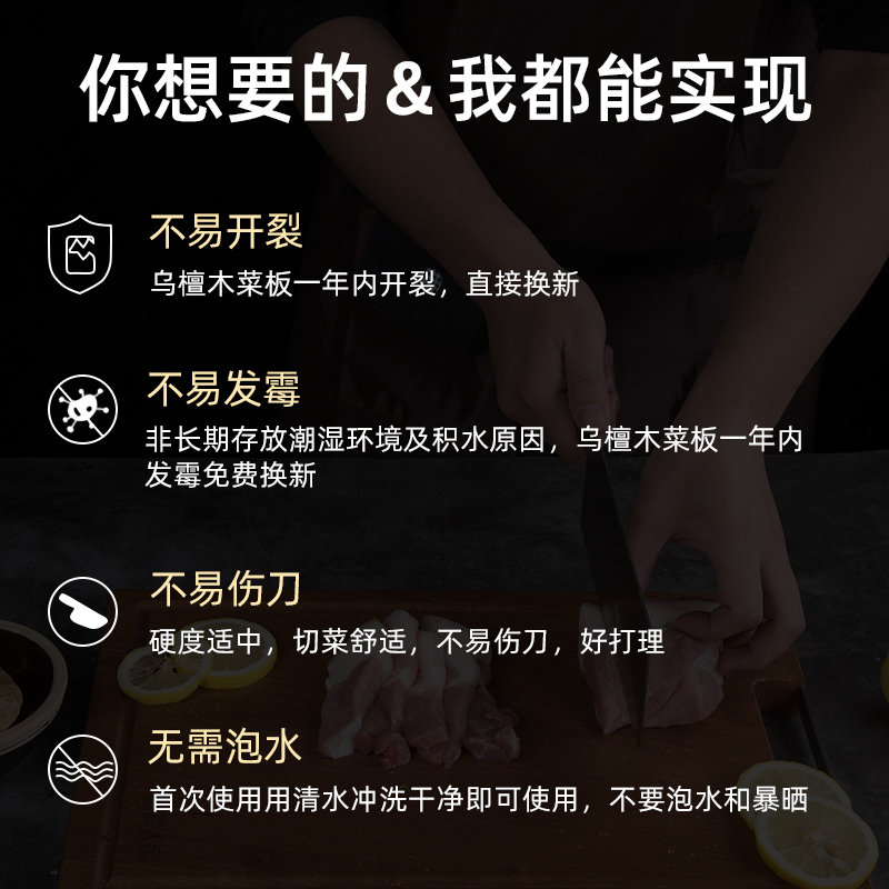 Rich people's ebony wood cutting board household cutting board large cutting board case board solid wood kitchen occupies the board knife board dipping board