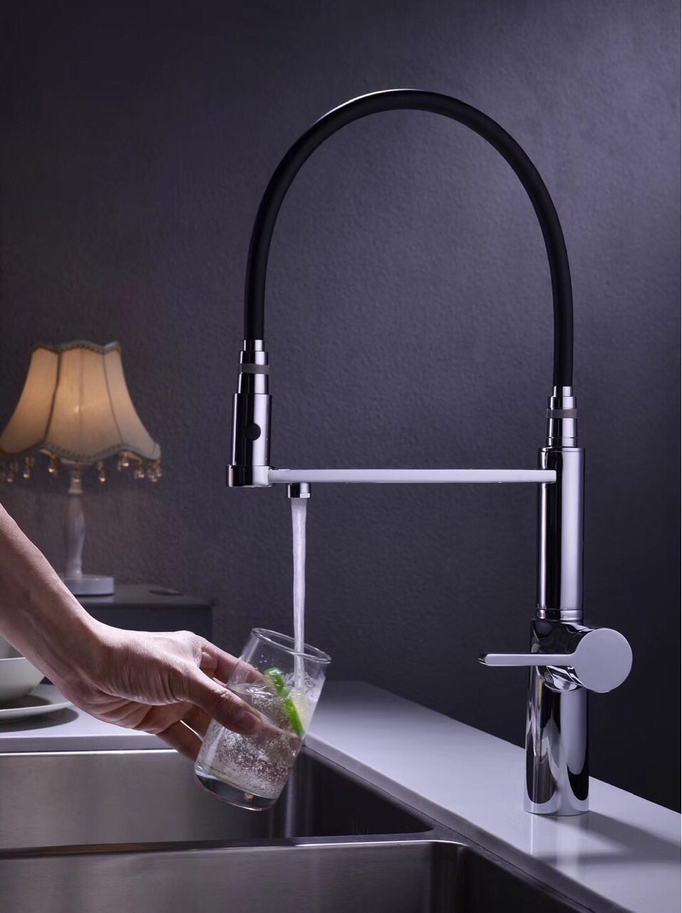 German contemporary bathroom high-end full copper hot and cold with pure water rotating vegetable basin three-in-one straight drinking kitchen tap