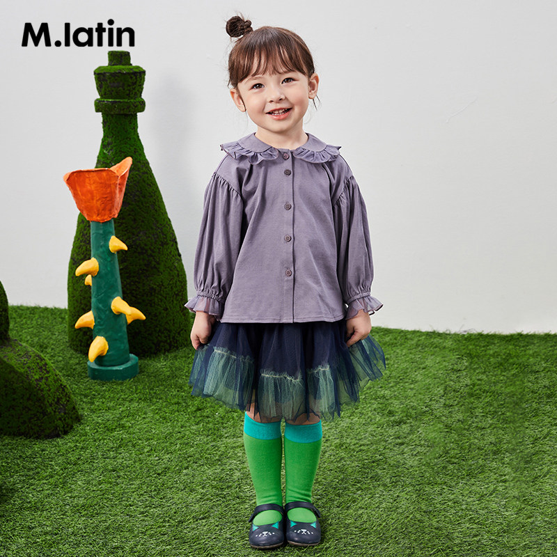 Maladin Children's Dress Girl Long Sleeve Shirt 2021 Spring Autumn New Sweet Princess Lotus Leaf Side Collar Children's Shirt