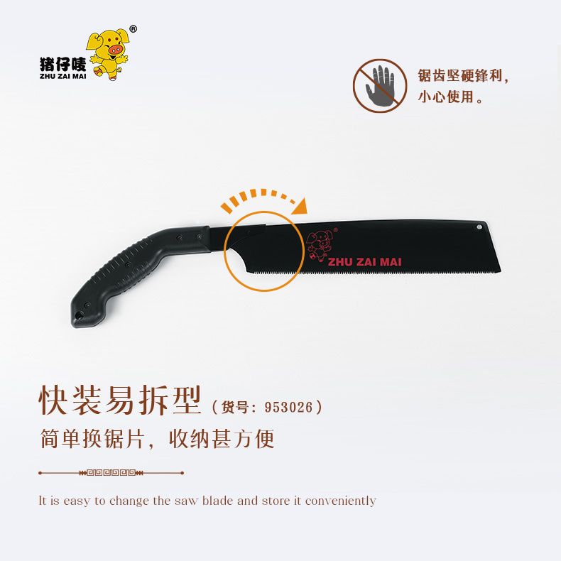 Piggy mark garden logging hand board sawmiller fast hand pull saw Non-slip shockproof black handle knife sawmiller saw