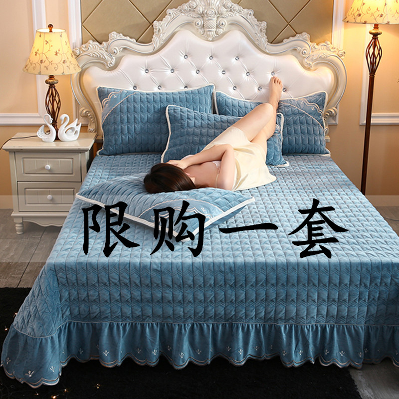 37 degrees constant temperature warm heating plus velvet four-piece set special thickened padded bed Single bed cover double-sided velvet Milk velvet winter