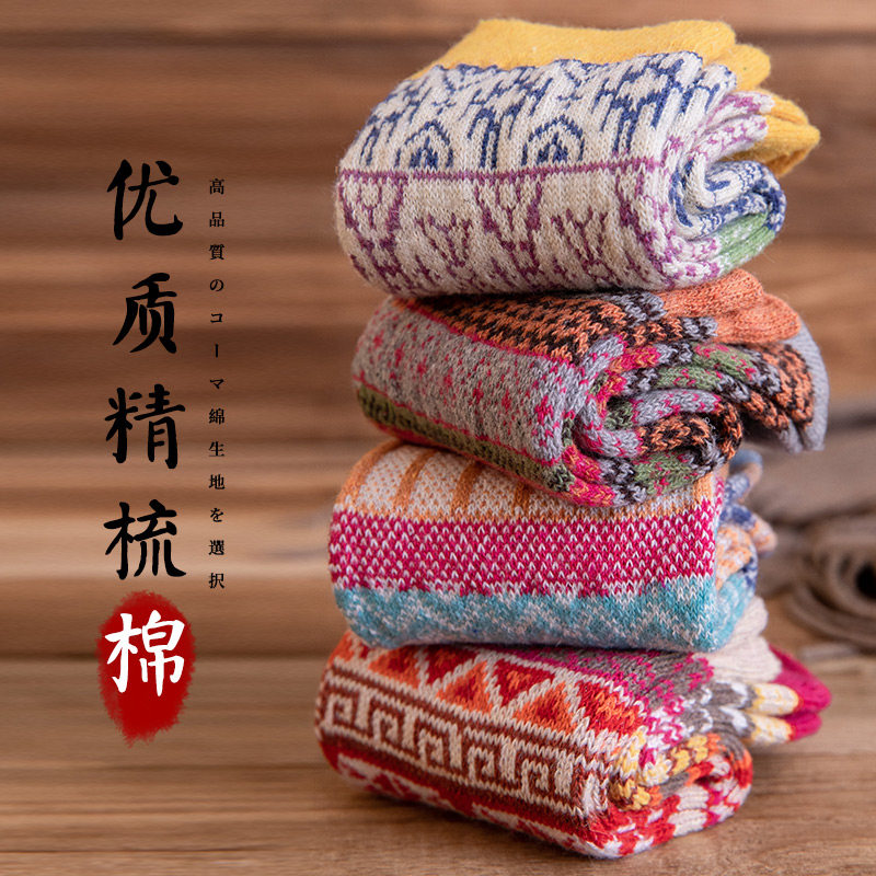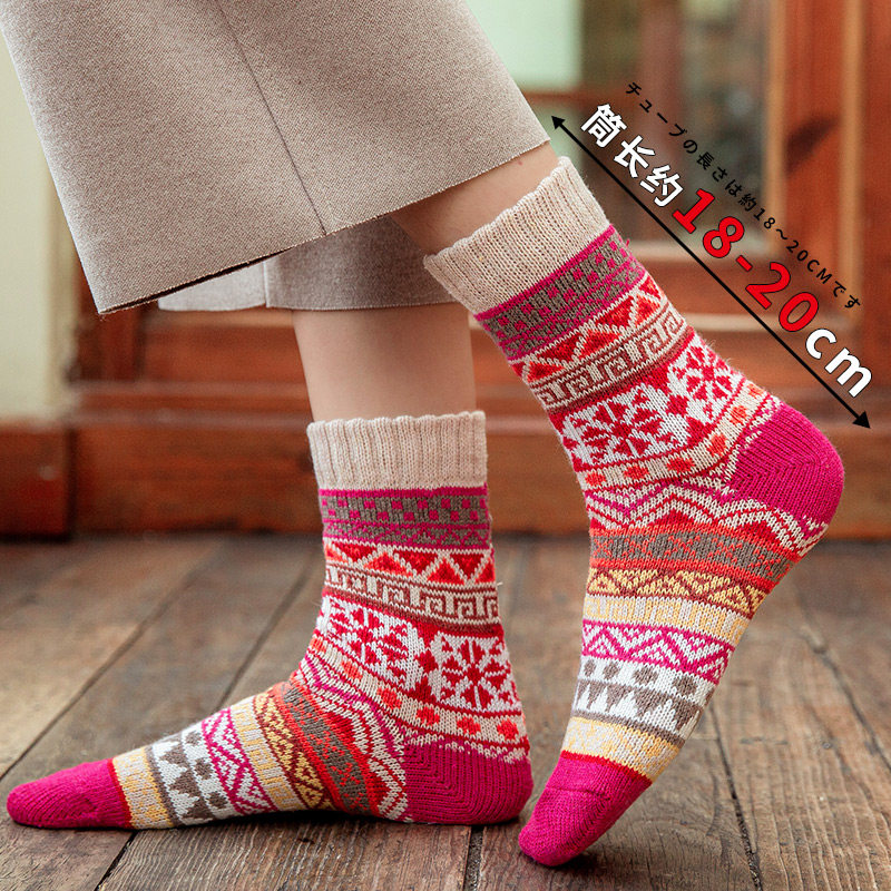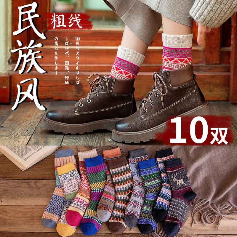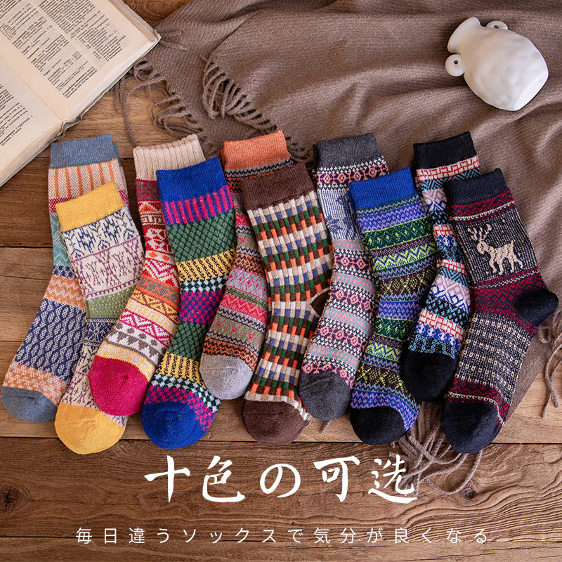 Wool socks women's mid-tube socks autumn and winter ins tide national wind winter thickened cotton socks retro Christmas stockings women