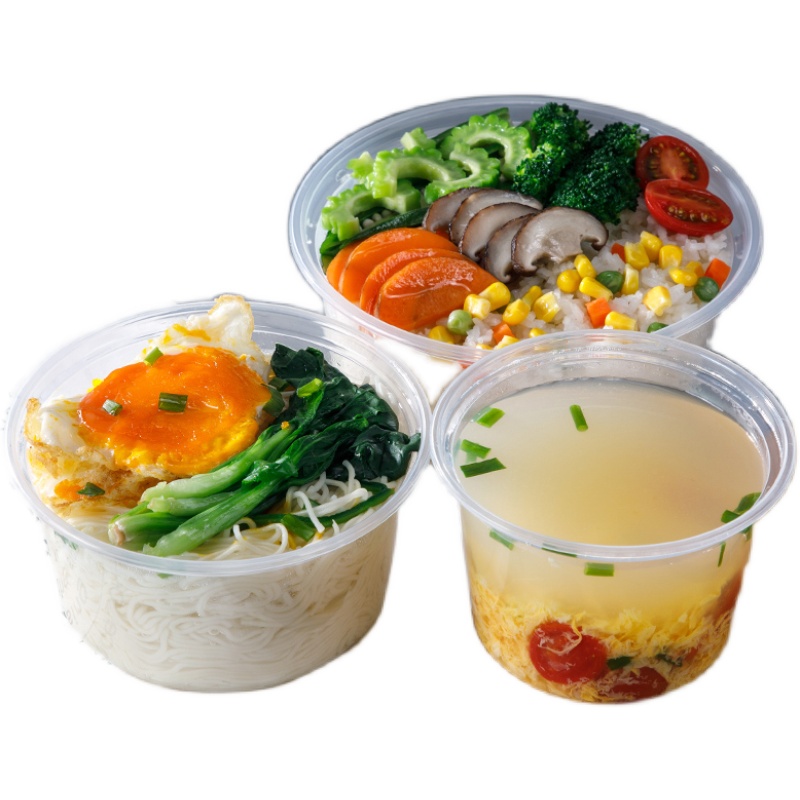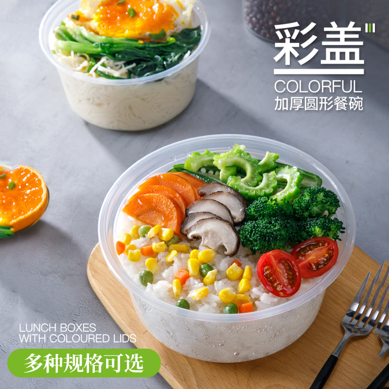 Disposable lunch box whole box commercial packaging box food grade transparent lunch box round high-end packaging bowl with lid soup box