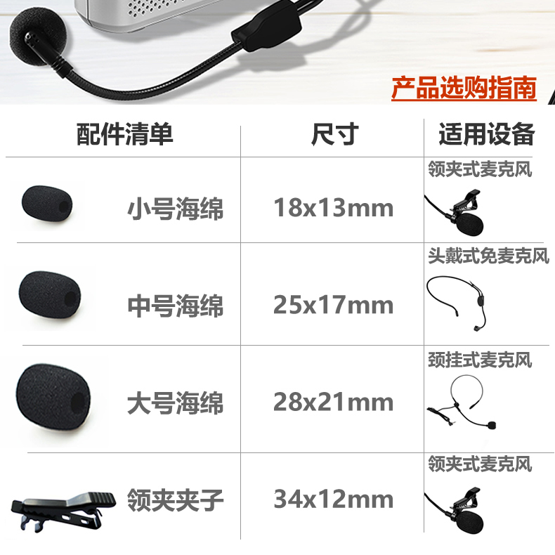 Small bee loudspeaker collar clip head wearing neck-mounted microphone microphone cover sponge sleeve anti-spray cover clip accessories