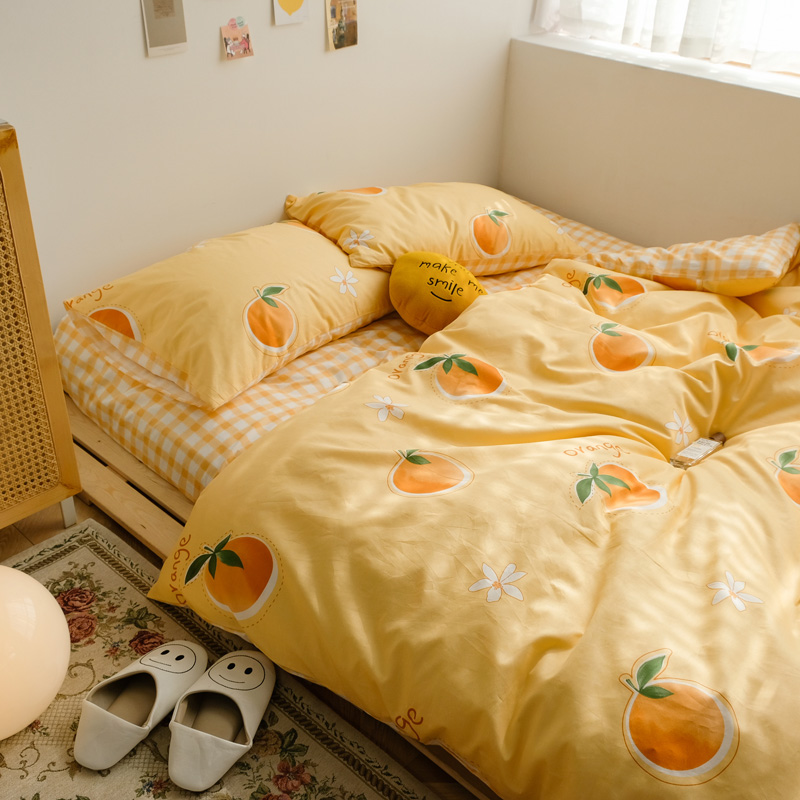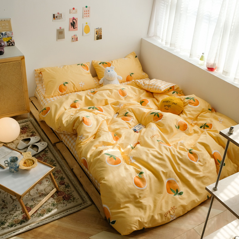 Orange full of ins fresh spring and summer 40 cotton four-piece cotton sheets quilt cover student bedding