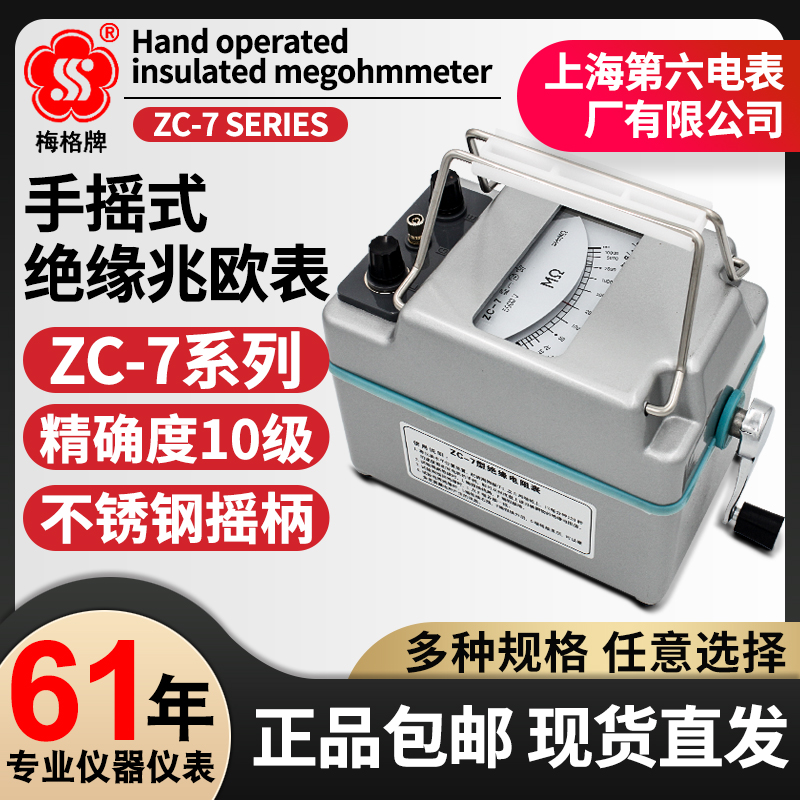 Shanghai Six Watch Factory Meg Zc7 Megohm Meter 500v Hand CrankEdmeter Electrician zc25B-3 Insulation Resistance Tester