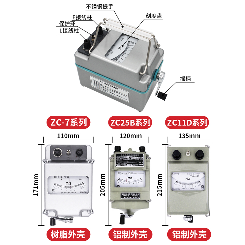 ZC7 100V100MZC7 250V250MZC7 500V500MZC7 500V1000MZC7 1000V1000MZC7 1000V2000MZC7 2500V2500MZC7 2500V5000MZC7 5000V5000MZC7 5000V10000MZC7 10000V10000M Leather Bag ZC25B-1 ( 100V100M Durable Aluminum Shell)ZC25B-2(250V250M Durable Aluminum Shell)ZC25B-3(500V500M Durable Aluminum Shell)ZC25B-4(1000V1000M Durable Aluminum Shell)
