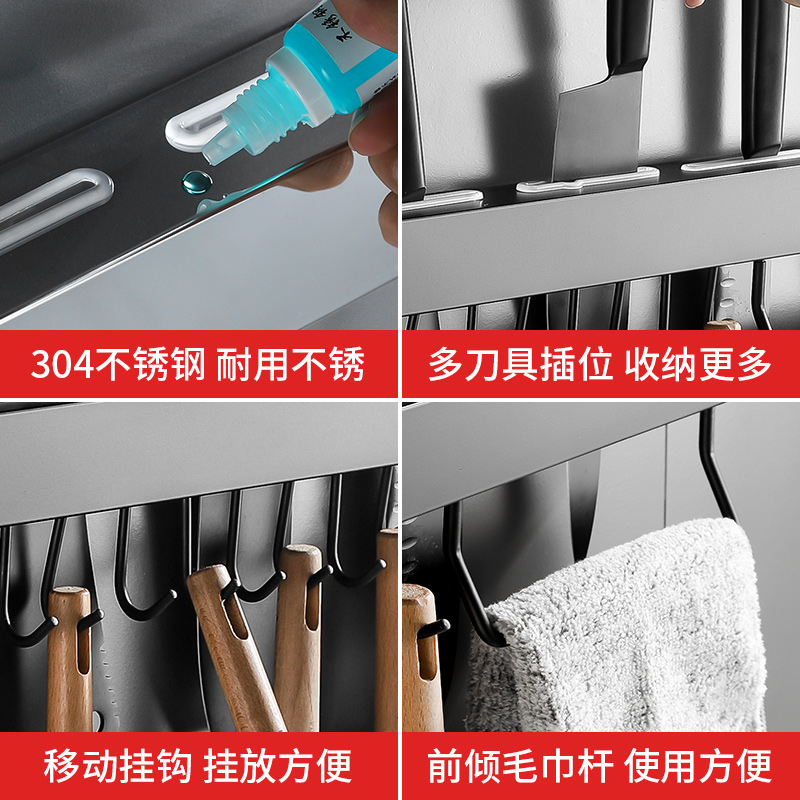 Tool holder wall-mounted hook integrated 304 stainless steel free of perforated kitchen knife kitchen cutter set object shelf