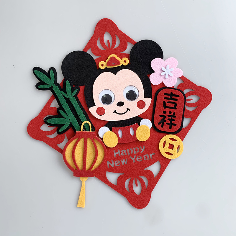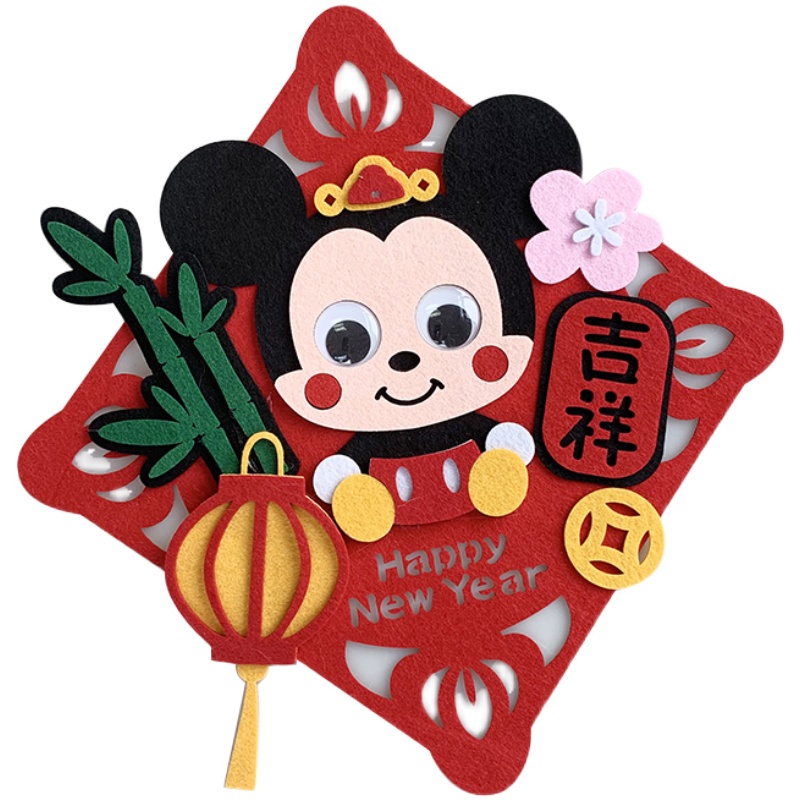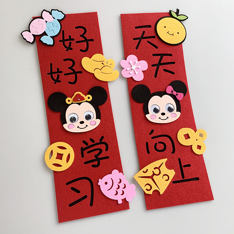 2021 New Year's Fortext Gate to Niu Lunar New Year's Spring Festival Placement Decorative Supplies Cartoon Three-dimensional Spring Couplets Suit