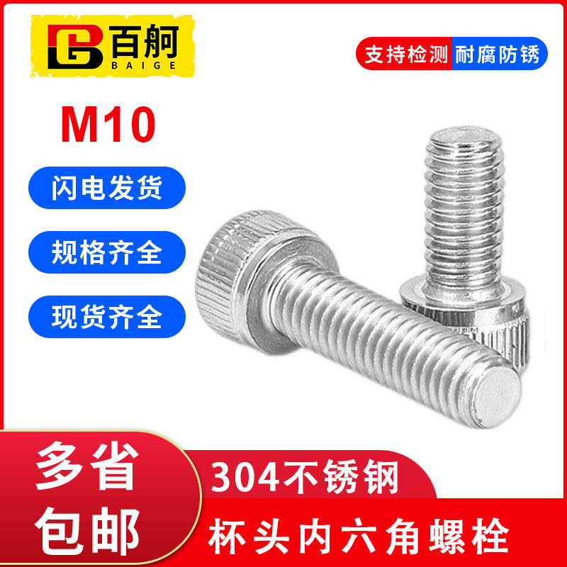 M10 cup head hexagonal screw 304 stainless steel bolt round screw 10mm cylindrical head lengthening bolt national standard