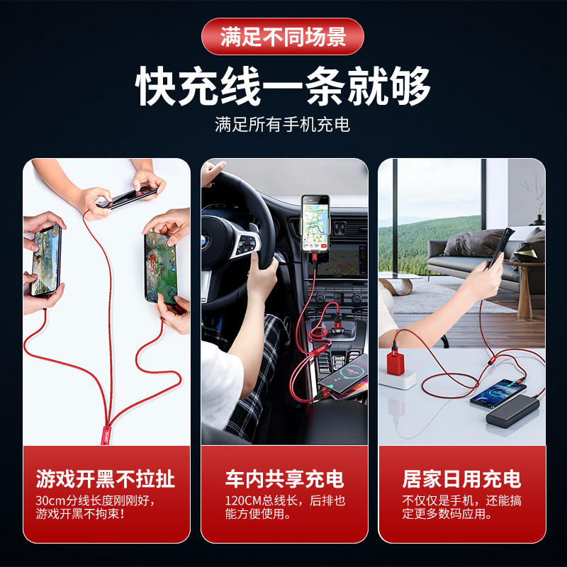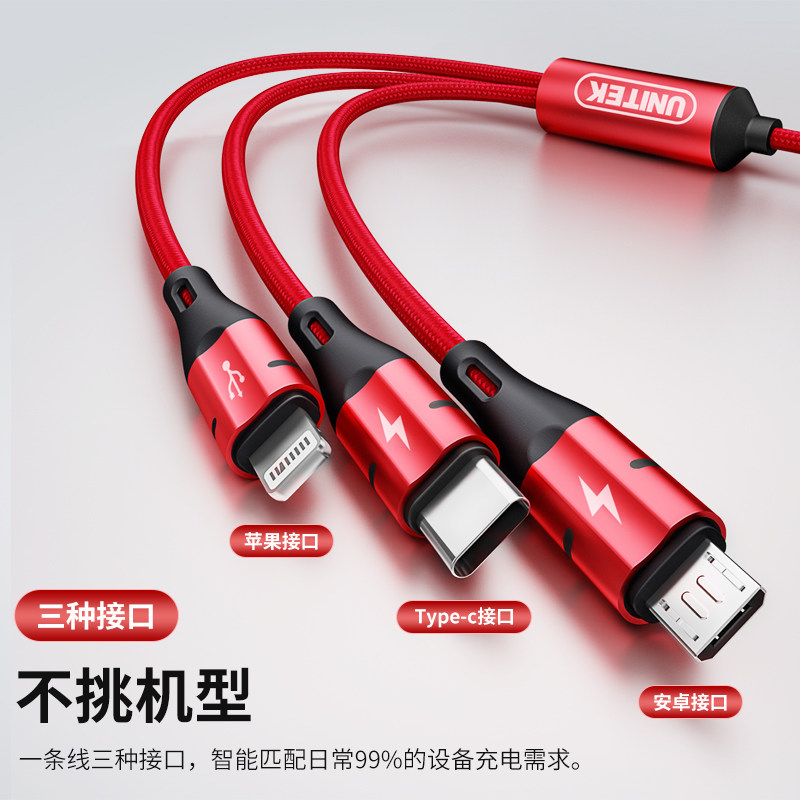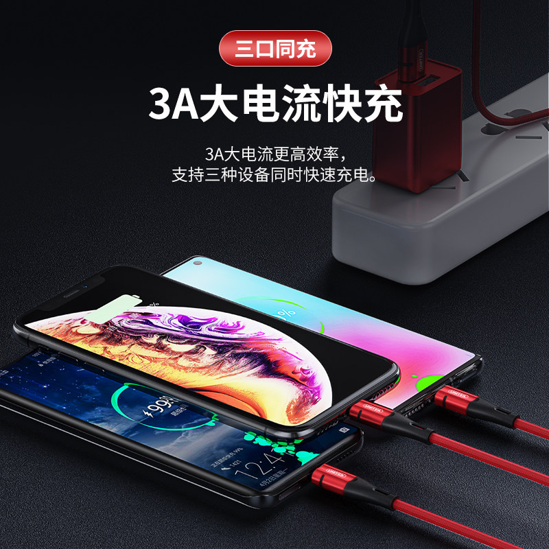 Three-in-one data cable is suitable for iPhone one-to-three mobile phone fast charging Apple X charging cable typec Huawei