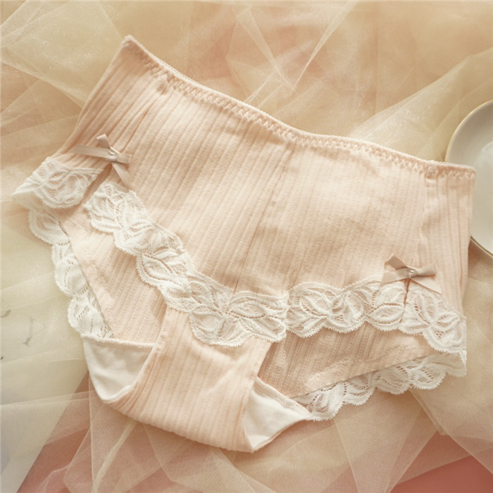 Japanese girl mid-waist lace panties cute bow cotton fabric breathable antibacterial cotton briefs