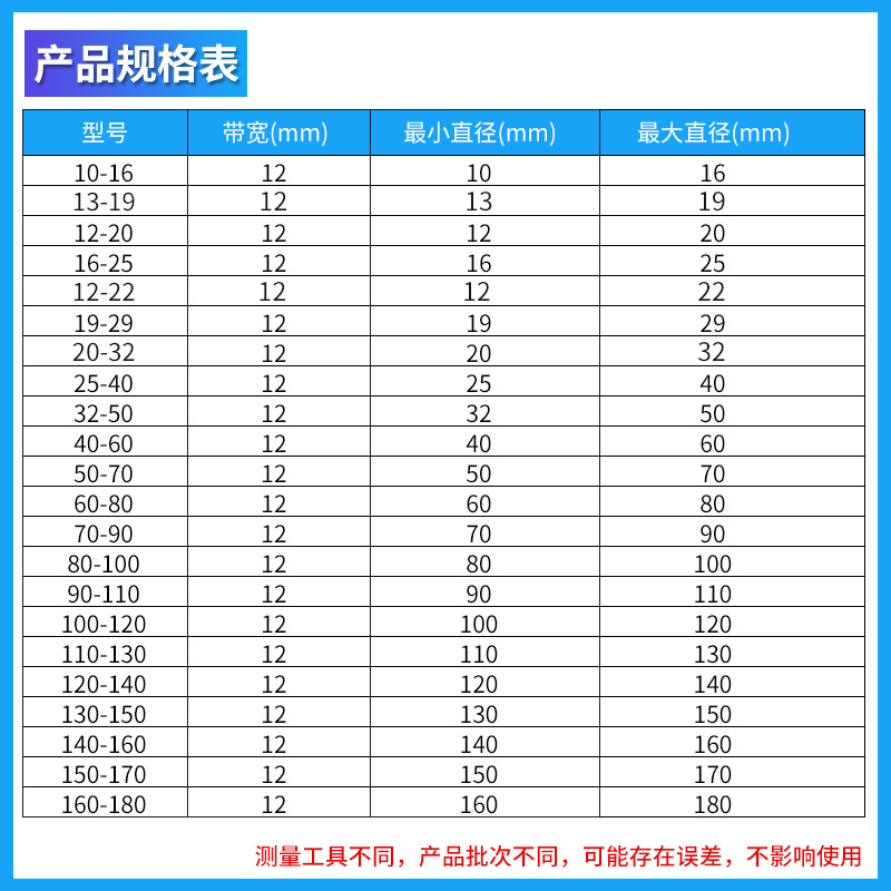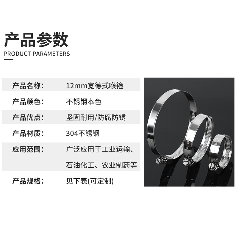 Silver 304 German Diameter 10-16 Wide 12MM304 German Diameter 13-19 Wide 12MM304 German Diameter 12-20 Wide 12MM304 German Diameter