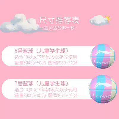Li Ning Basketball Female No. 7 Junior High School Students Children's Pink Basketball Girls Special Basketball Cute High School Entrance Examination Basketball