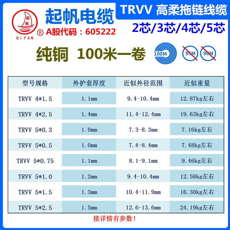 Qifan TRVV high soft pure copper drag chain cable 6 cores 8 cores 10 cores 12 cores × 0 3 0 5 0 75 square national standard