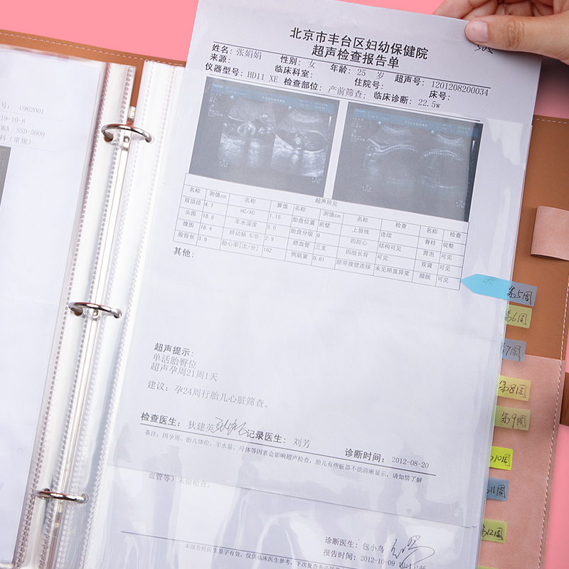 Pregnancy test report sheet storage book Cute loose-leaf portable pregnant mother B ultrasound pregnancy test report sheet collection information book a4 large capacity multi-functional pregnant woman maternity test file record folder
