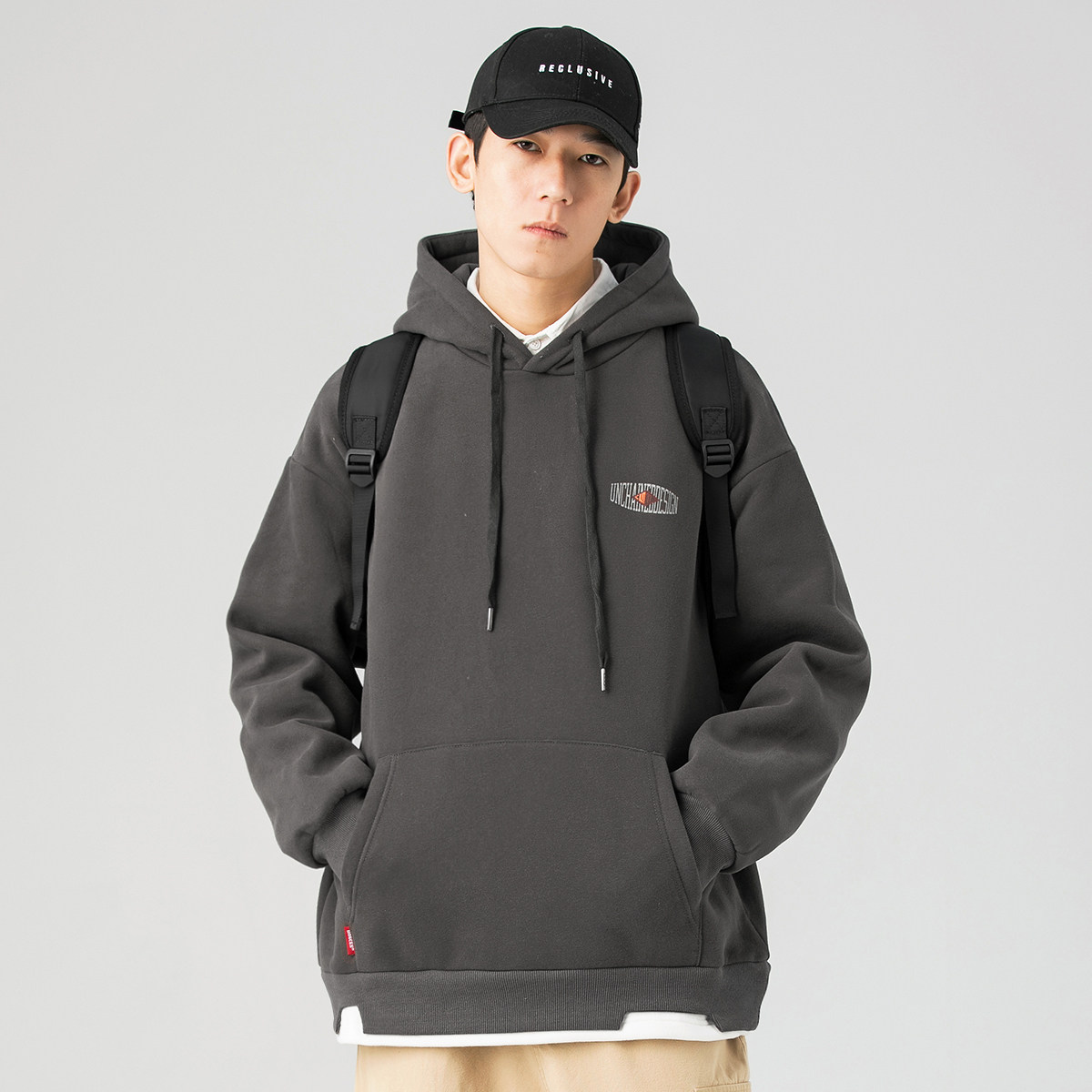 GBOY autumn winter gush thickened thick cotton T male Chains with cap loose trend 100 lap fake two blouse jacket