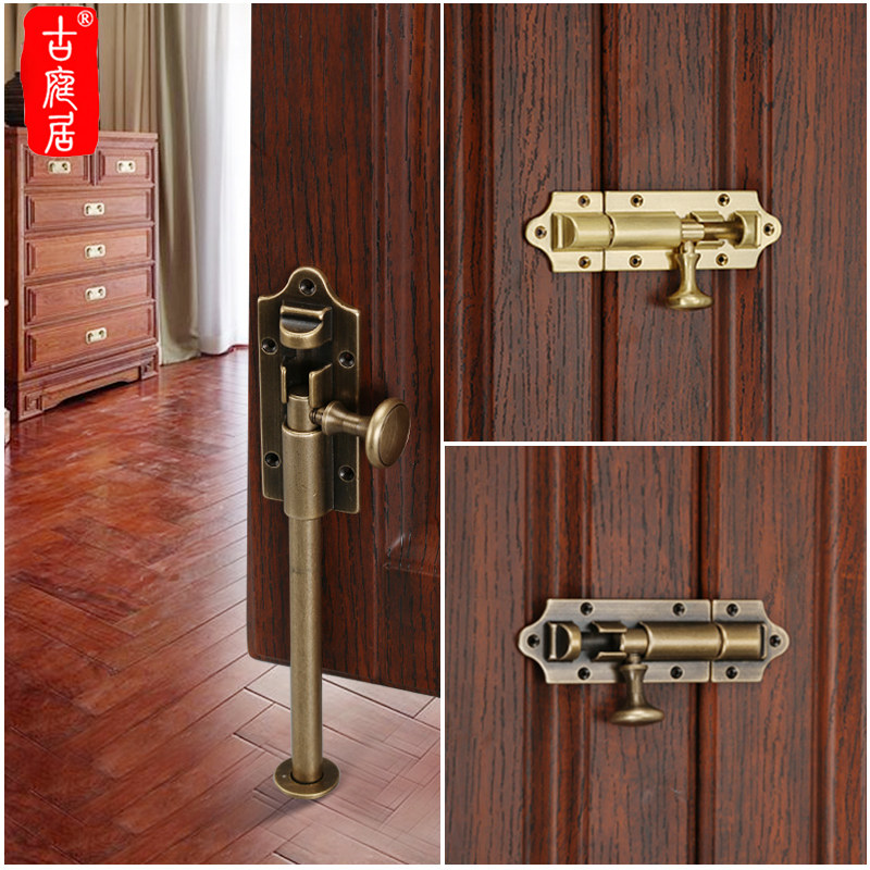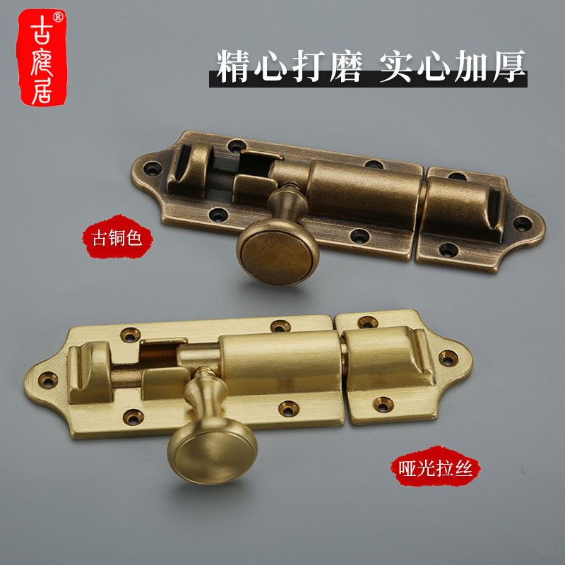 Door bolt latch pure copper wooden door imitation old-fashioned door latch window retro door latch surface mounted lengthened and thickened bronze door buckle