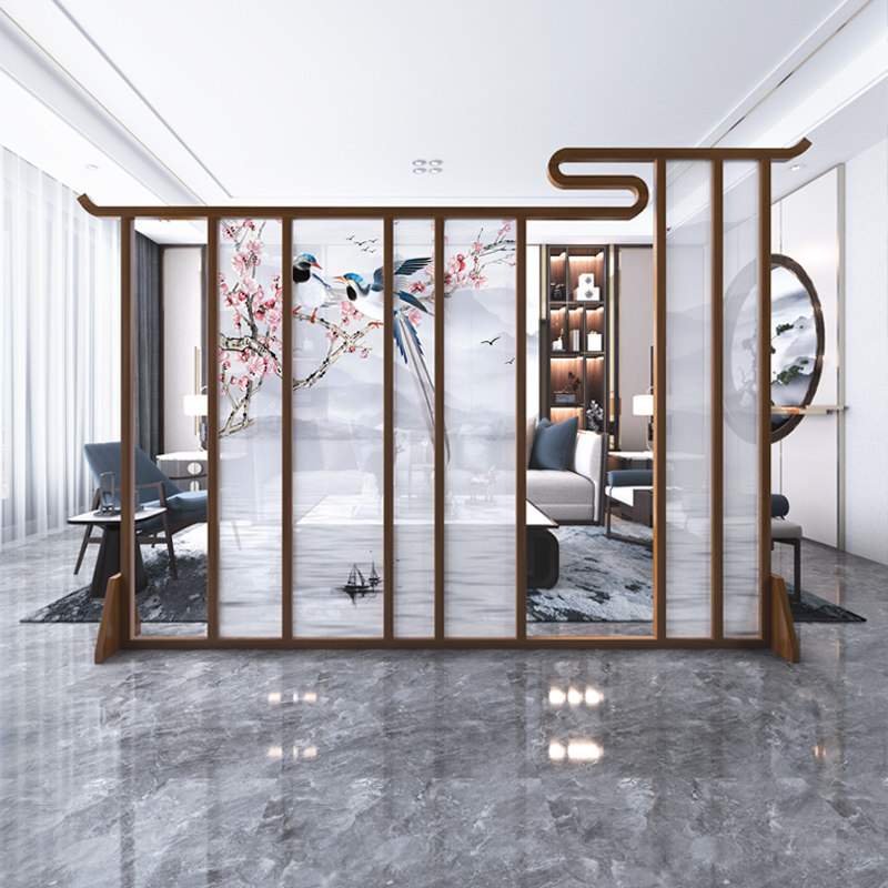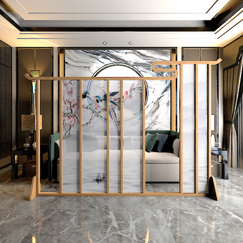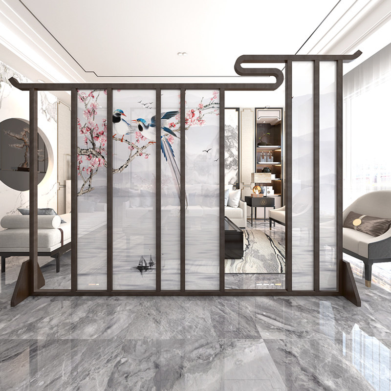 New Chinese-style screen partition living room tea room Zen solid wood block porch hollow creative wooden decorative seat screen