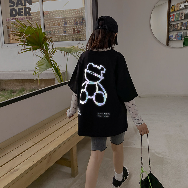 Elegant black Luminous bear short sleeves