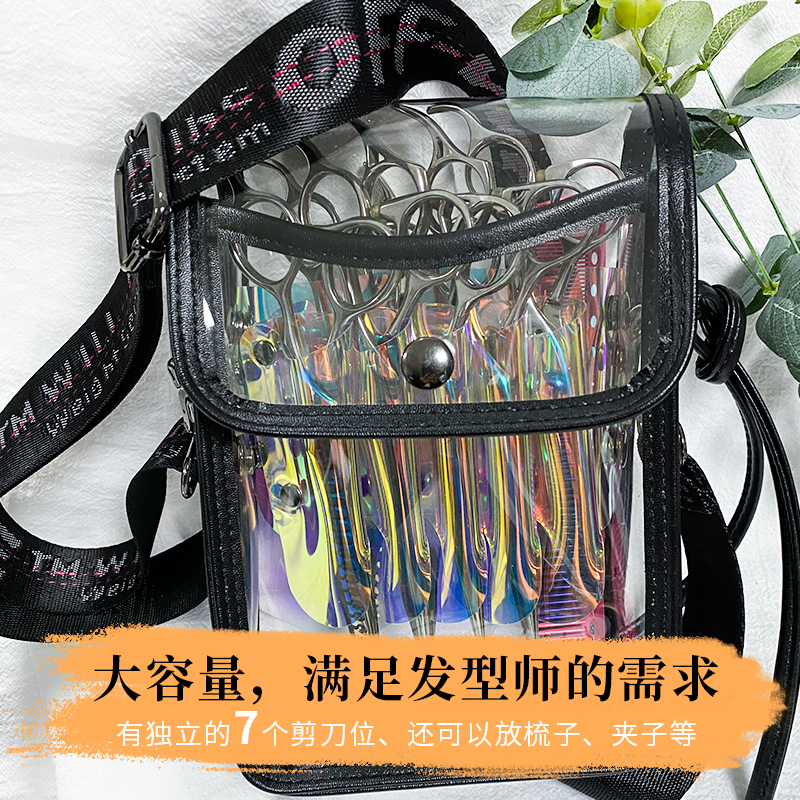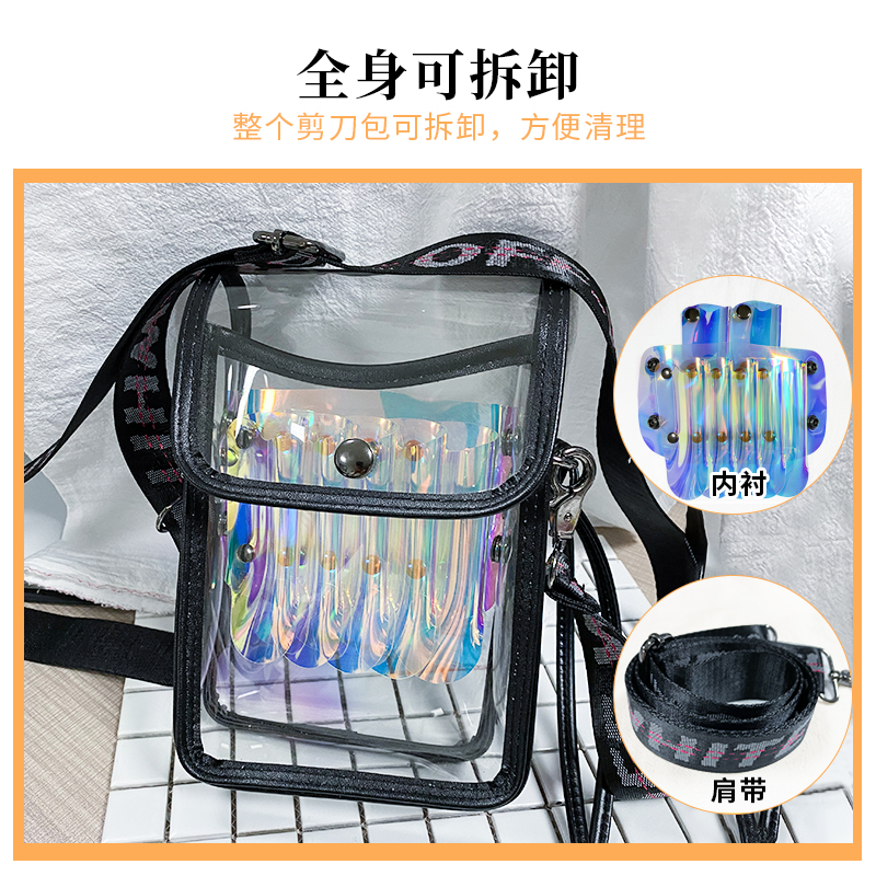 Hair Stylist Special Personality Transparent Rainbow Color Scissors Bag Dazzling Advanced Sensuality Fashion Beauty Hair waist containing inclined satchel