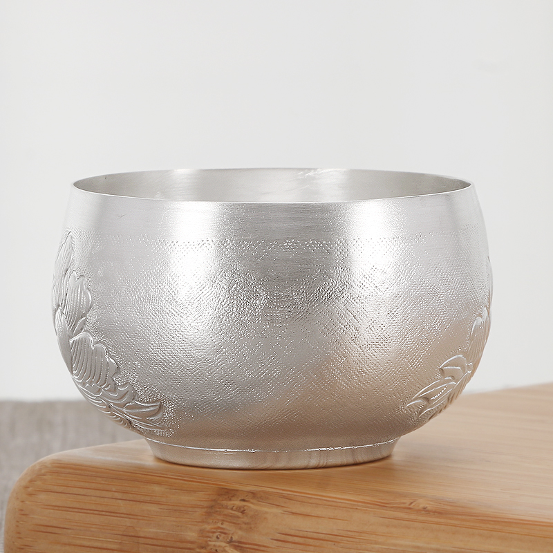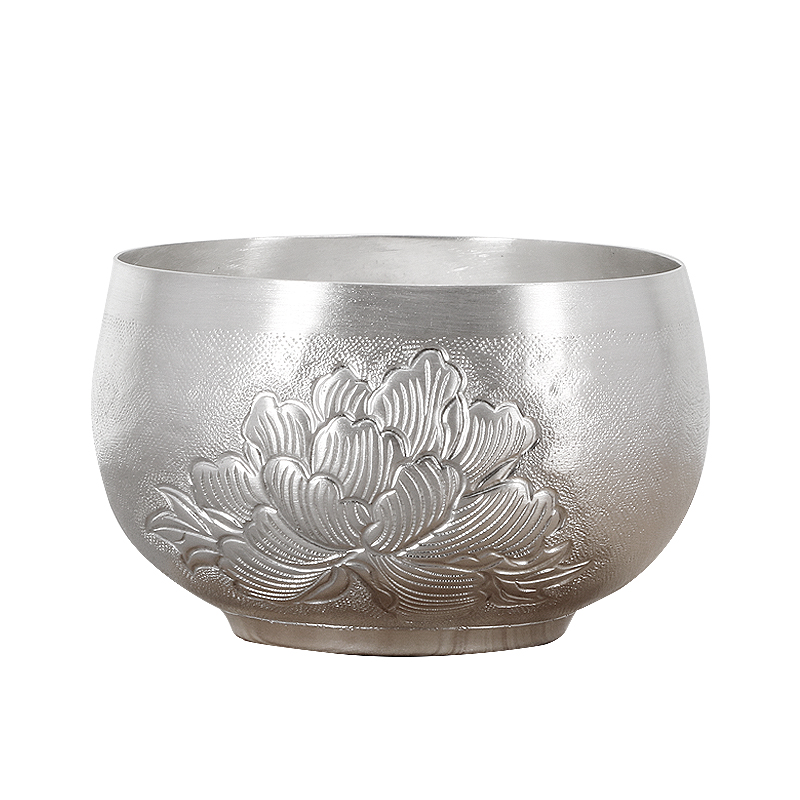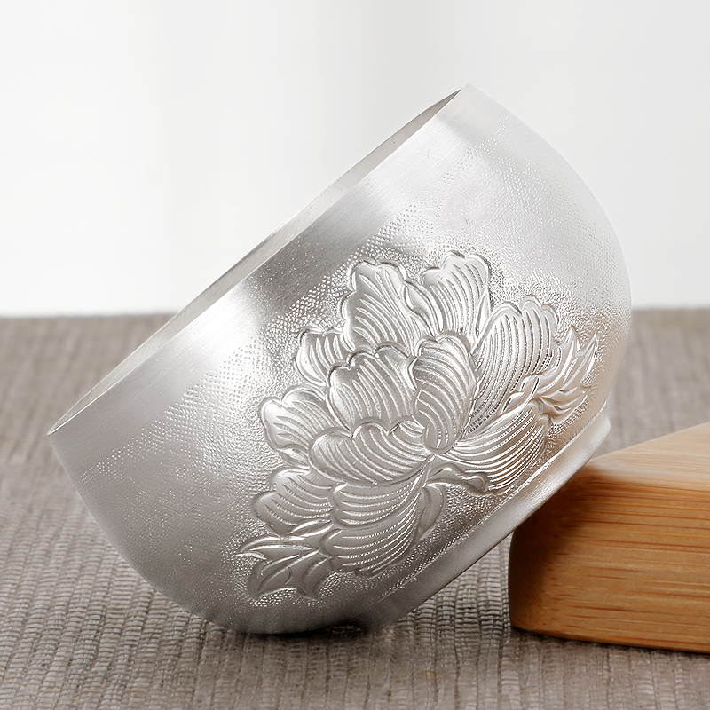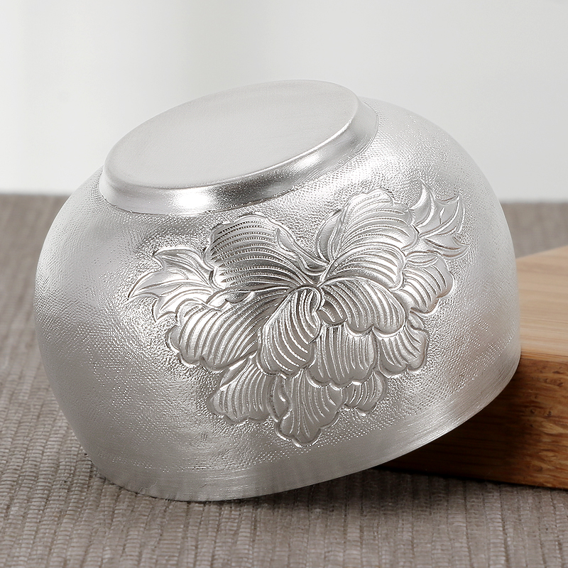 The world silver tower pure silver 999 silver cup peony pure handmade hammer pattern small tea cup office household kung fu tea set