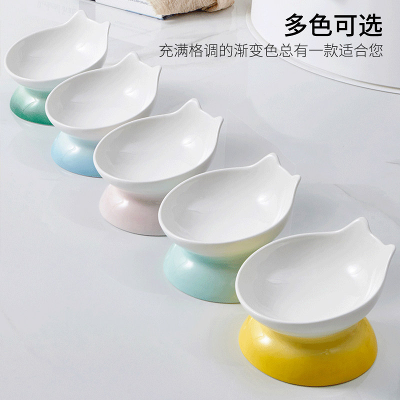 Rainbow Ceramic Cat Bowl 15 Degree Bevel Protection Cervical Cat Food Bowl Pet Drink Water Bowl Dog Bowl Anti-Splash Kitty Bowl