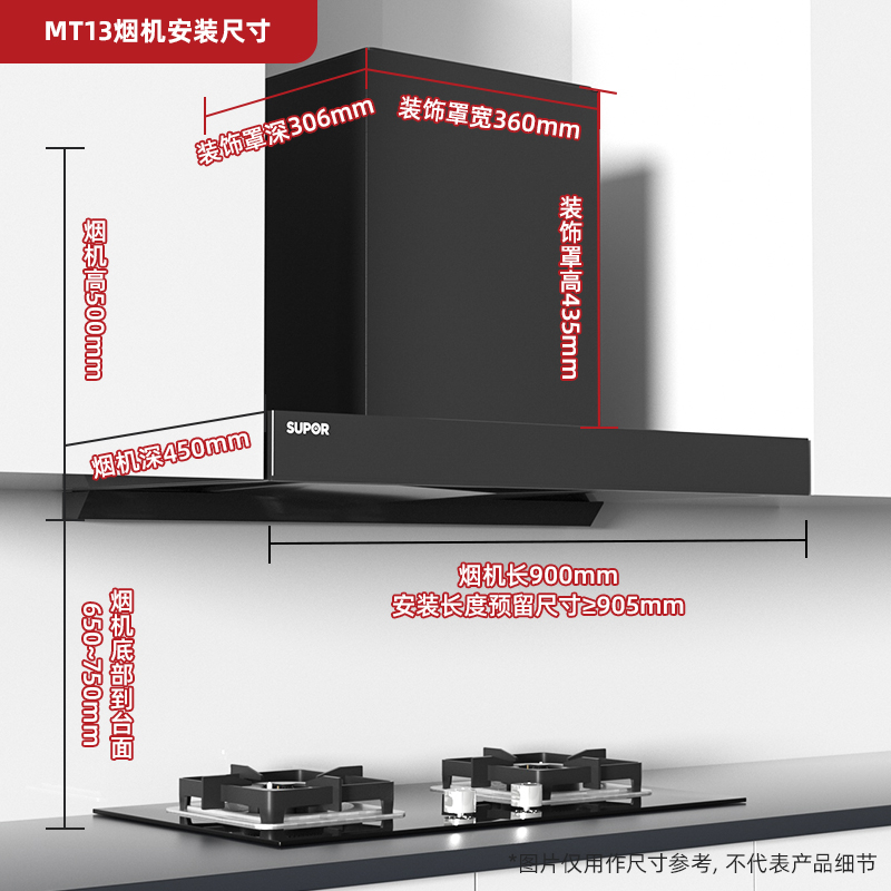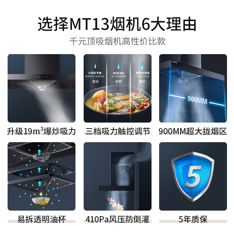 Supor MT13 suction range hood household kitchen European-style small oil marriage machine de-draining oil machine large suction