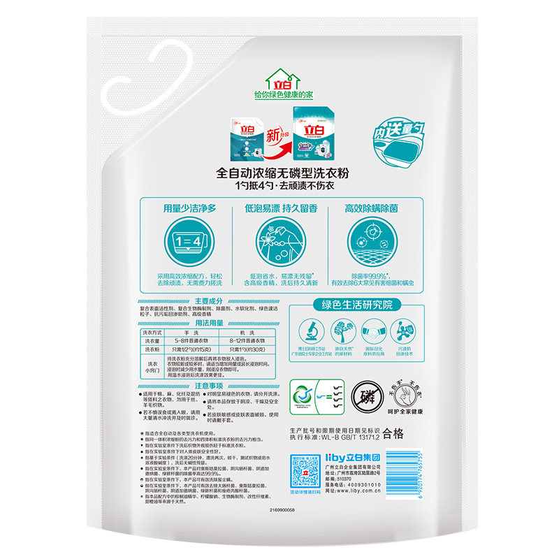 Upright White Concentrated Washing Powder 1 3kg Bag Family clothes Home Go to stain Unhurt Wash Aroma Persistent Non Soap Powder