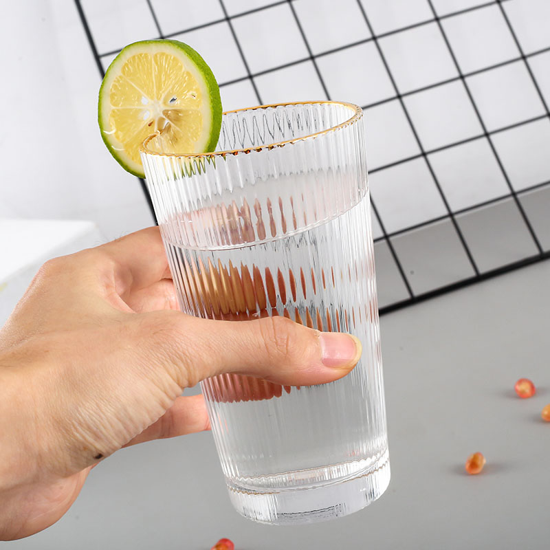 Glass Cup Ins Wind Vintage Cups Coffee Cups Simple Day Style Fine Striped Water Glasses Women Korea Fresh And Cute