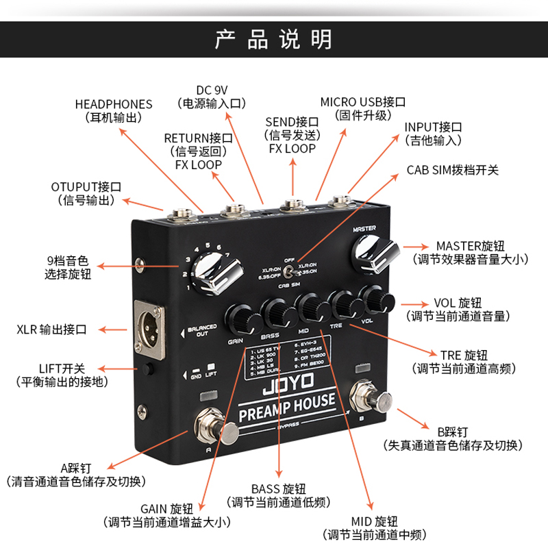JOYO Zhuo Le R-15 digital front stage electric guitar guitar single block effect box simulation 9 new speakers