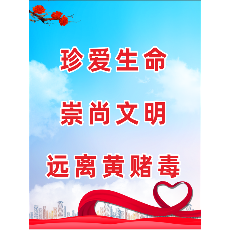 Treasures Love Life Advocates Civilization Away from Yellow Gambling Every Smoking Ban Forbidden Gamble Ban Yellow Gambling Poison This Place Forbidden Yellow Gambling Poison and other illegal and criminal activities Anti-drug prostitution and gambling prohibition of smoking is noble