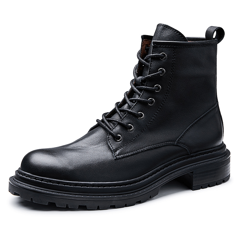 European station motorcycle Martin boots men's autumn and winter plus velvet high-top genuine leather work boots mid-top men's cowhide boots trendy