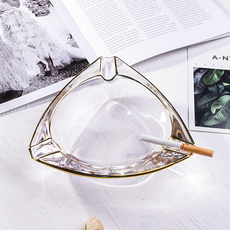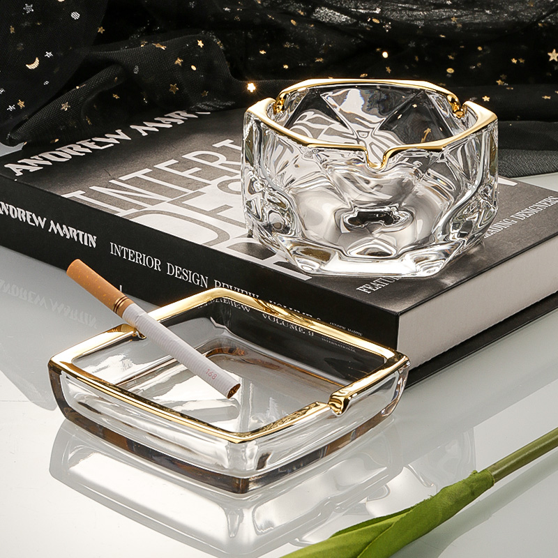 Fashion creative ashtray gold edge depicting gold crystal glass modern office home living room coffee table light luxury ornaments