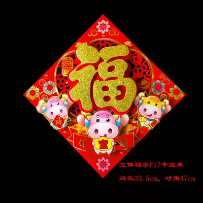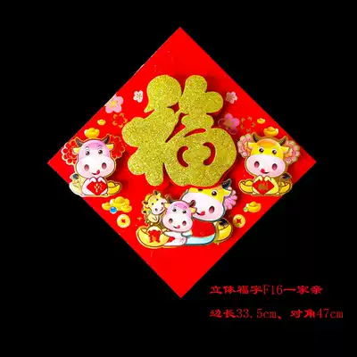 2021 Year of the Ox cute cartoon Zodiac Fu word door stickers three-dimensional paper bronzing gold multi-layer high-grade entrance door decoration