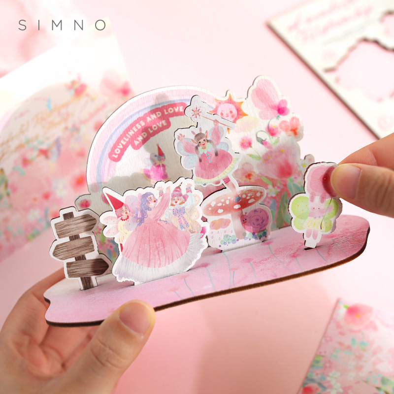 Wooden stereo card diy hand-made high-end in-hand high-end in wind creativity birthday gift tabletop swing card Christmas card holiday atmosphere desktop