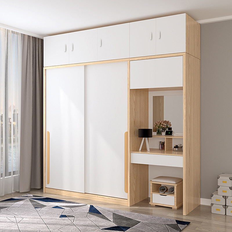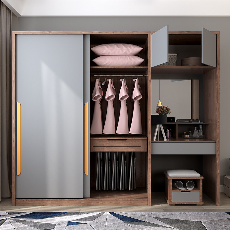 Wardrobe sliding door wardrobe Nordic modern simple board wardrobe with dressing table sliding door large wardrobe