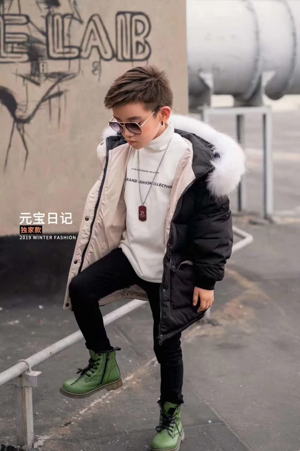 Winter boys and girls Korean version of foreign style ingot diary warm hooded short down jacket for big children