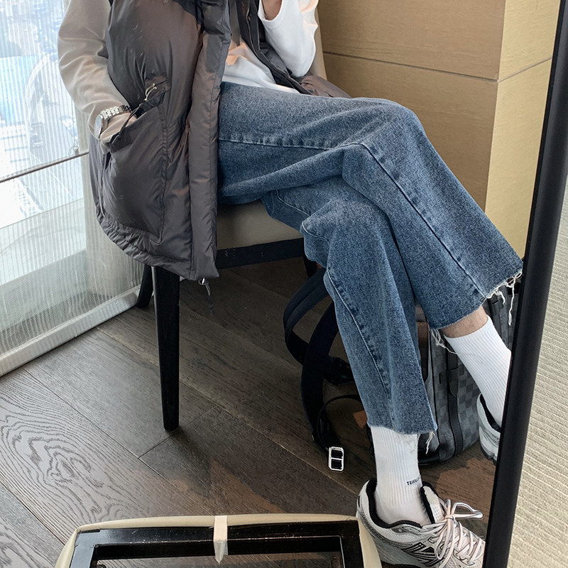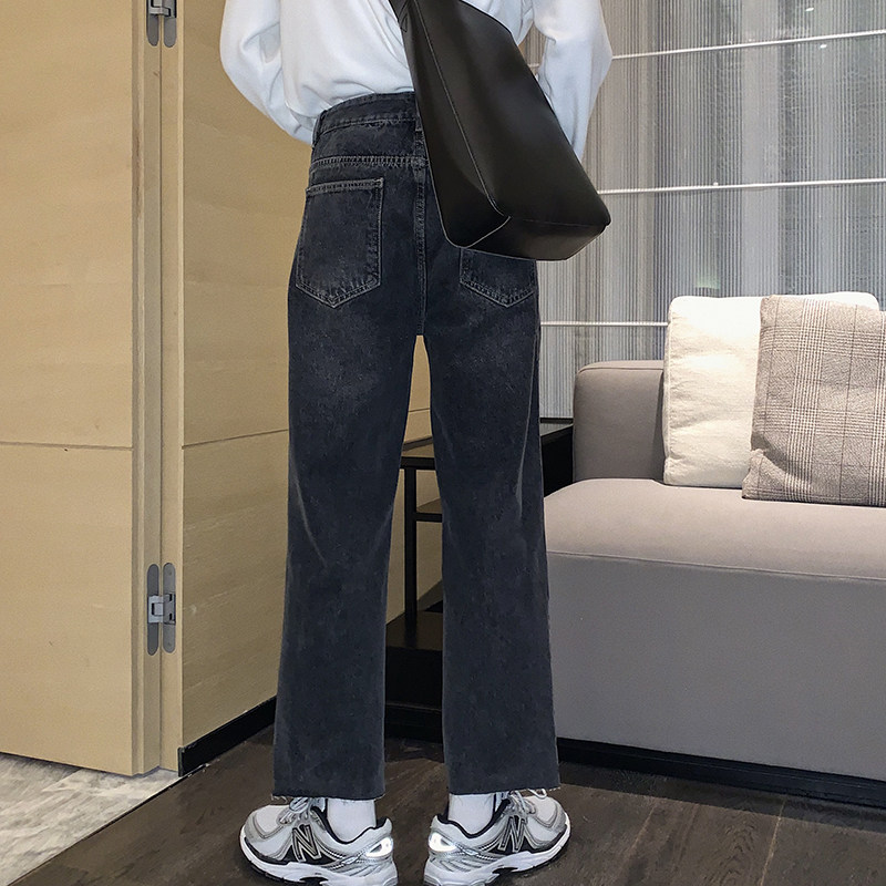 Hualun winter black jeans men plus velvet straight loose autumn and winter casual pants Korean style trousers